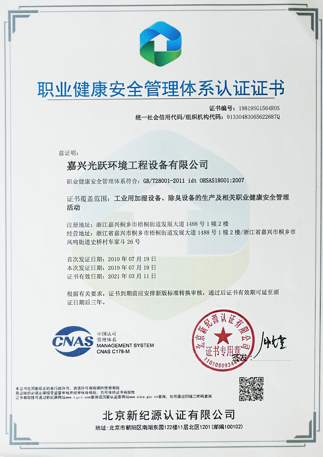 通過了ISO9001、ISO14001、OHSAS18001、AAA和CE等管理體系的認證